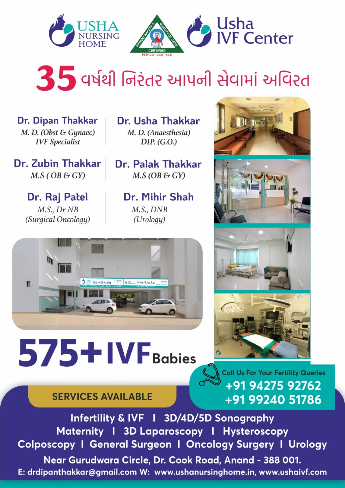 We, Dr. Dipan Thakkar and Dr. Usha Thakkar started Usha Nursing Home with the vision and mission of providing quality healthcare to women. Today, through constant hardwork and teamwork we have established ourselves as a center of excellence not only in Anand and other major cities of Gujarat but also all over the world.